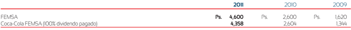 La siguiente tabla muestra los dividendos decretados y pagados de la Compañía y de Coca-Cola FEMSA al 31 de diciembre de 2011, 2010 y 2009: