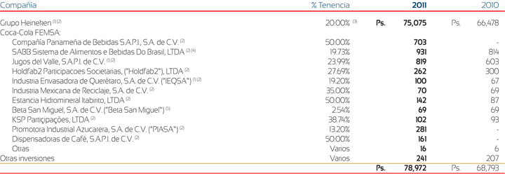 (3) Al 31 de diciembre de 2011 , se integra por 12.53% de participación en Heineken, N.V., y 14.94% de participación en Heineken Holding, N.V., las cuales representan un interés económico del 20% en Heineken (ver Nota 5 B).