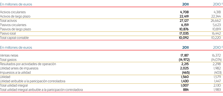 A continuación se muestra información financiera relevante de Heineken al 31 de diciembre de 2011 y 2010, y resultados consolidados por los años terminados en la misma fecha:
