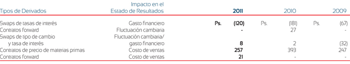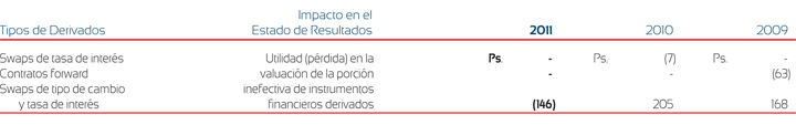 Al 31 de diciembre de 2011, la Compañía cuenta con los siguientes contratos vigentes de swaps de tasa de interés: