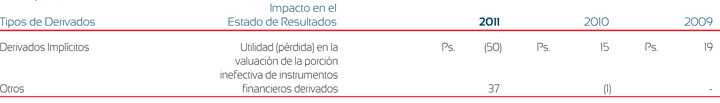 Por los años terminados al 31 de diciembre de 2011, 2010 y 2009. Cifras expresadas en millones de dólares americanos ($) y millones de pesos mexicanos (Ps.).