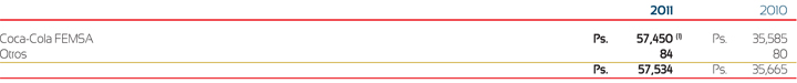 A continuación se muestra un análisis de la participación no controladora de FEMSA en sus subsidiarias consolidadas al 31 de diciembre de 2011 y 2010: