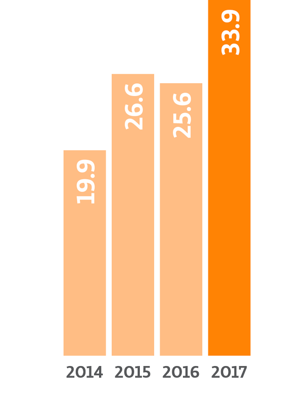(Toneladas) En 2017, 34.4% de los materiales utilizados fueron de origen reciclado.